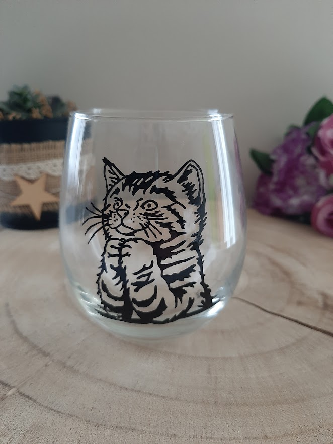 Vous cherchez le cadeau personnalisé chat portrait qui fera fondre le cœur d’un amoureux des félins ? Ce verre à eau, orné d’un portrait de chaton tigré peint à la main, est la pièce d’artisanat idéale pour célébrer la beauté de nos compagnons à quatre pattes. Chaque trait de pinceau est une invitation à l’émerveillement, capturant la douceur et la curiosité typiques des jeunes chats.
