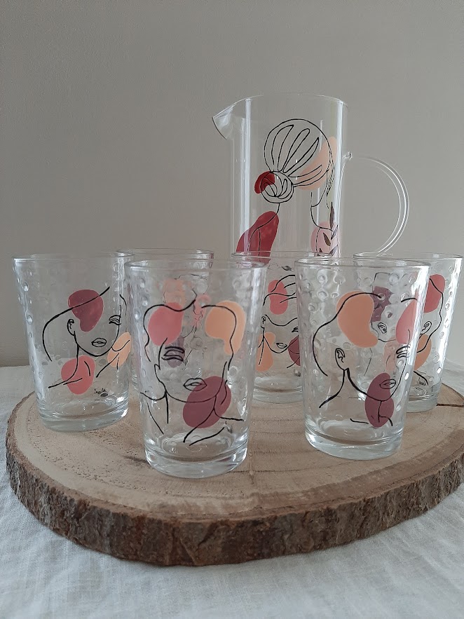 Conseil d’entretien : Pour préserver la délicatesse des visages et l’éclat des couleurs sur votre pichet et vos verres, le lavage à la main est impératif.