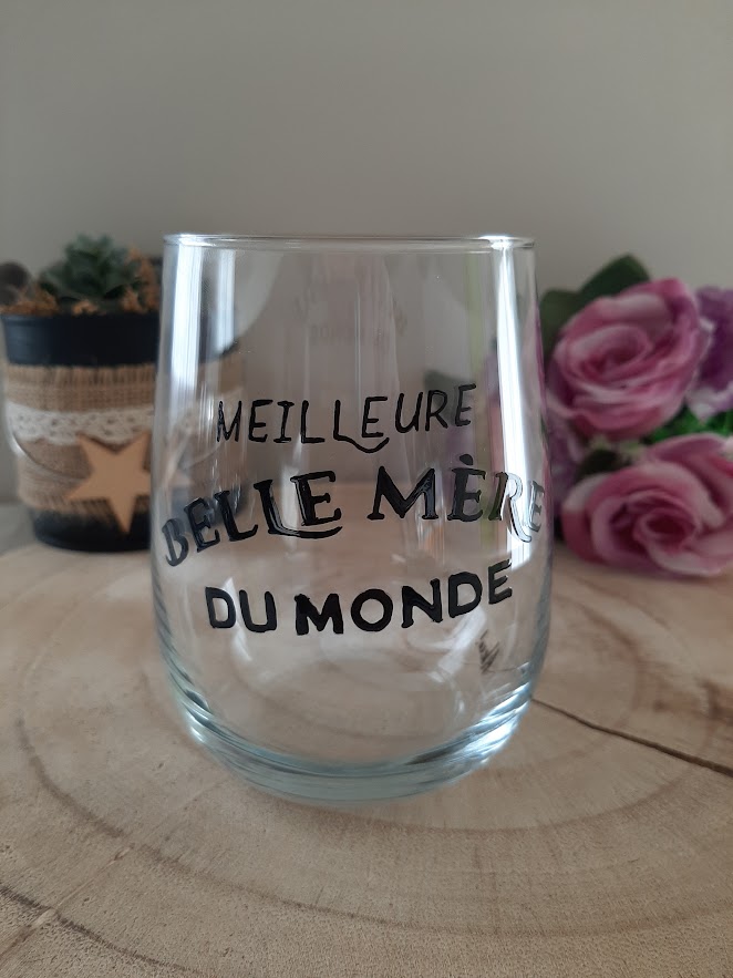 Vous cherchez un cadeau qui sorte de l’ordinaire pour votre belle-mère ? Ce verre original est une attention délicate qui valorise sa place dans la famille. Le contraste de l’écriture noire sur le verre cristallin apporte une touche moderne et soignée à sa table. C’est l’idée cadeau parfaite pour un anniversaire, pour Noël ou pour la fête des mères.