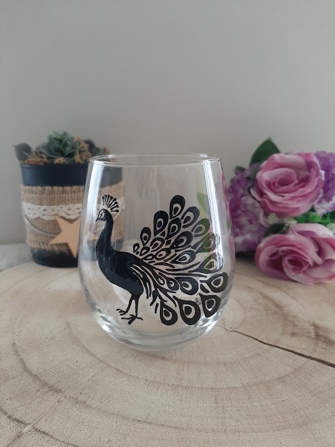 Un verre décoré main artisanat pour une table élégante ✨ Vous cherchez un verre décoré main artisanat pour éblouir vos convives ? Ce modèle illustré d’un paon majestueux est une véritable pièce de collection.