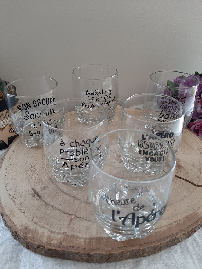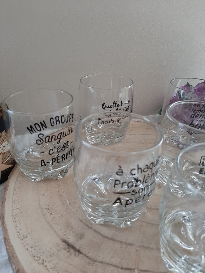 Fini les verres classiques et sans âme ! Apportez une touche de convivialité et d’humour à vos tablées avec mes verres à apéro décorés à la main. Chaque pièce est unique peinte à la main, créée avec passion dans mon atelier d’artisanat d’art en Vendée. Offrir un verre peint à la main, c’est choisir l’artisanat français.