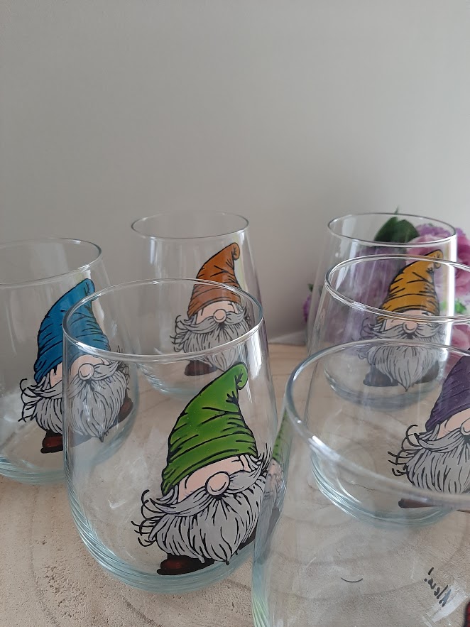 Mettez de la couleur et de la magie à votre table ! Découvrez ce lot de 6 gobelets en verre, chacun orné d’un petit gnome barbu au bonnet coloré. Un ensemble artisanal joyeux et ludique, idéal pour ne plus jamais confondre son verre lors des repas en famille ou entre amis !