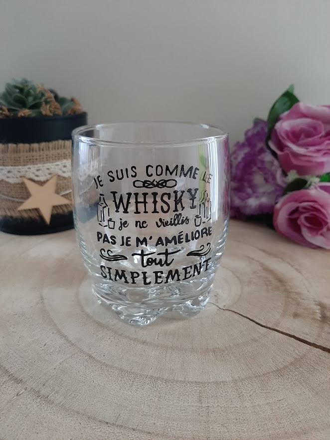 Cadeau apéro peint main : l’originalité par ALECO ✨ Vous cherchez un cadeau apéro peint main ? Ce verre humoristique « Je suis comme le Whisky » est le choix idéal. Il apporte une touche de caractère à vos soirées. Chaque verre est créé avec passion en Vendée. C’est un cadeau apéro peint main qui représente l’artisanat français. Cependant, ce n’est pas un simple verre. C’est une pièce unique signée ALECO.