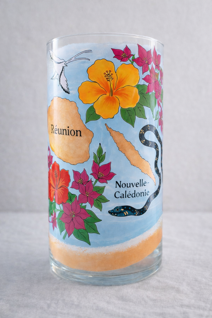 Chaque verre est peint à la main puis fixé par cuisson afin de garantir la résistance des couleurs.