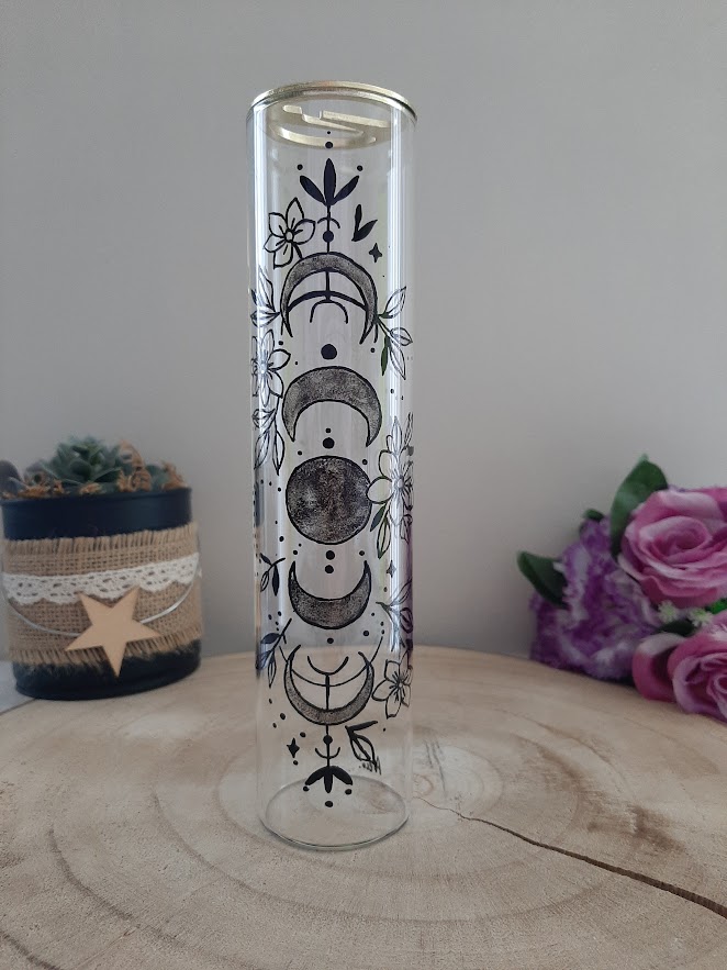 Chaque verre est peint à la main avec des peintures adaptées au verre puis fixé par cuisson pour garantir une bonne tenue dans le temps.