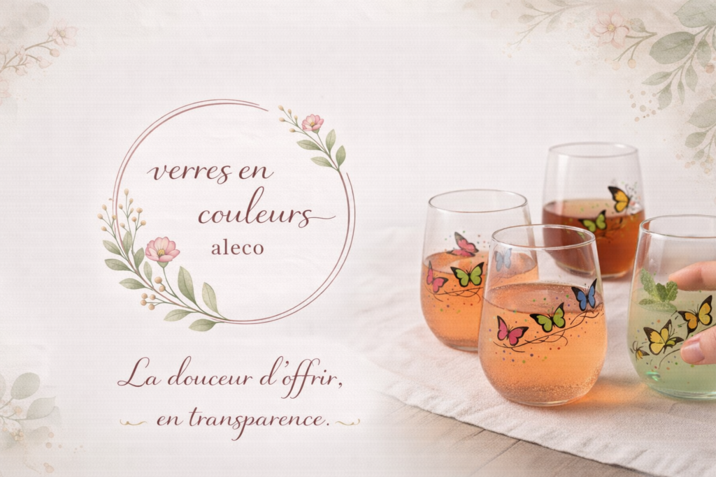 Chez Verres en Couleurs Aleco, je crée des verres peints à la main, un par un, dans mon atelier en France. Chaque création est unique et réalisée avec soin pour offrir un objet à la fois décoratif, utile et durable.